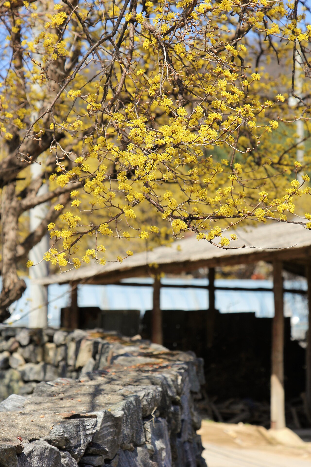 주차장에서 마을로 진입하면 드문드문 산수유나무가 눈에 들어온다. 담장 너머와 개울가에 핀 꽃을 감상하며 언덕을 오른다. 천천히, 천천히...... 아래쪽 산수유 꽃은 천천히 걸으며 자세히 봐야 온전한 아름다움을 드러낸다. 그렇게 발걸음을 옮기다 보면 마을 가장 위쪽 언덕에 닿는다. 수백, 수천 그루의 산수유나무가 군락을 이룬, 온통 노란 언덕이다.