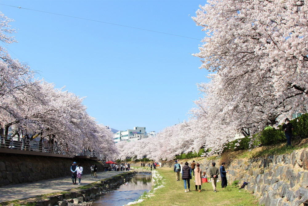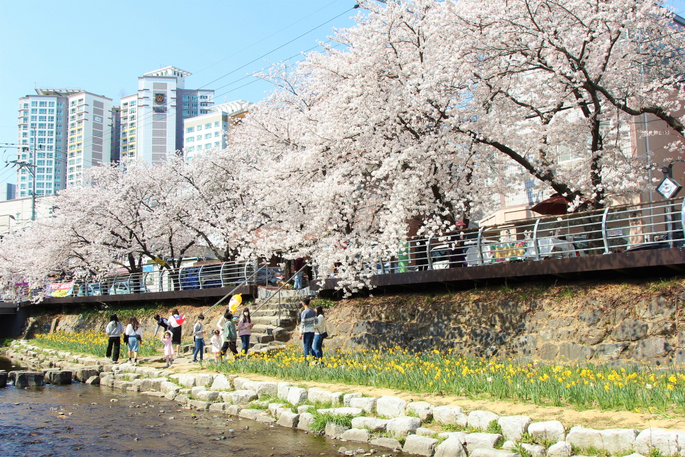 ‘봄바람 휘날리며 흩날리는 벚꽃길이~’ 무거천 궁거랑은 봄을 가득 담은 이 노래 가사와 너무나 어울리는 길이다.