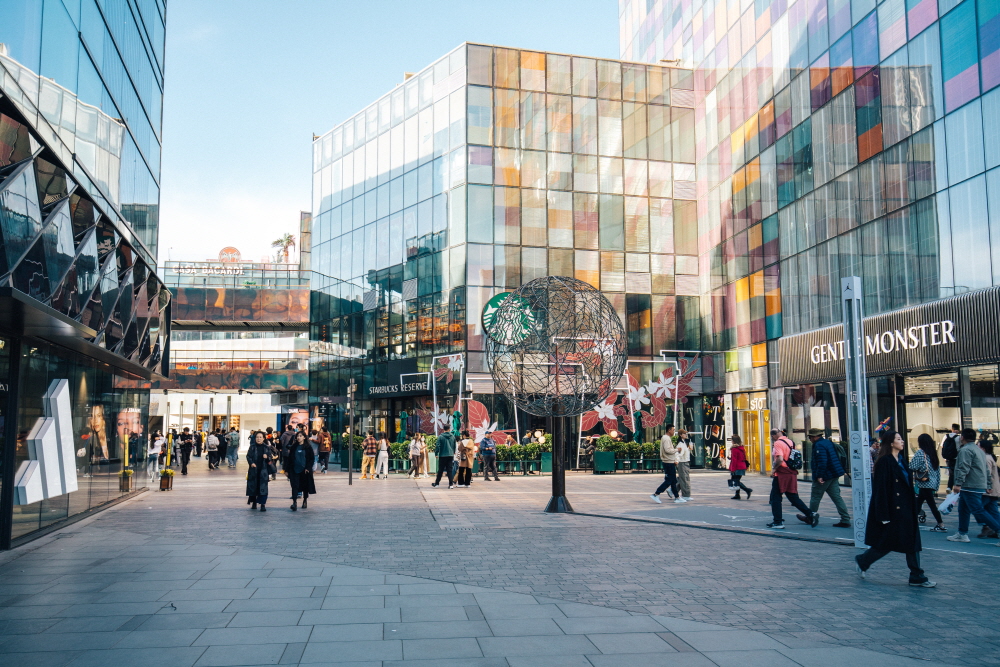 싼리툰 지역 중심에는 복합 쇼핑 플레이스인 타이구리(太古里)가 자리한다. 쇼핑몰은 크게 남과 북으로 구역이 나뉜다. 남쪽에는 주로 럭셔리 패션 브랜드 매장이 모여 있다. 우리나라에서 보기 힘든 디자이너 브랜드가 대부분이며, 럭셔리 호텔도 위치한다. 남쪽에는 일반적인 가격대의 패션 브랜드, 사무용품점, 서점, 각종 편집샵들이 모여 있다. 놀라운 것은 싼리툰 타이구리 가장 중심에 국내 브랜드인 ‘젠틀몬스터’가 입점해 있다는 점. 중국의 트렌드를 만나고 싶다면 싼리툰이 답이다.